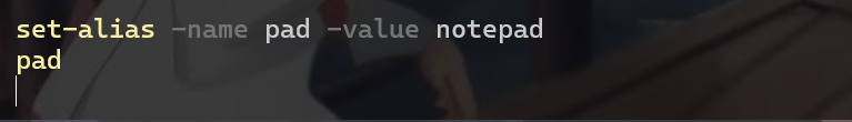 set-alias -name pad -value notepad